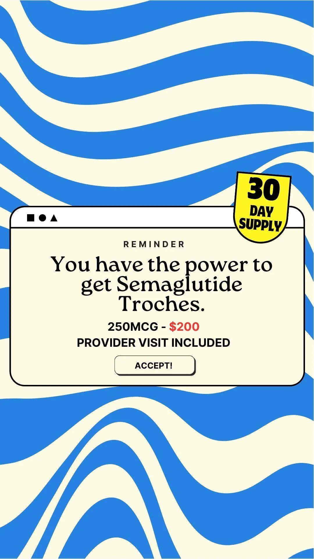 Semaglutide Troches are a once-daily medicated lozenge that dissolves under your tongue or between your cheek and gums.